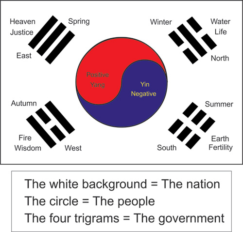 Then were the signs for the four elements on the Korean flag come from?